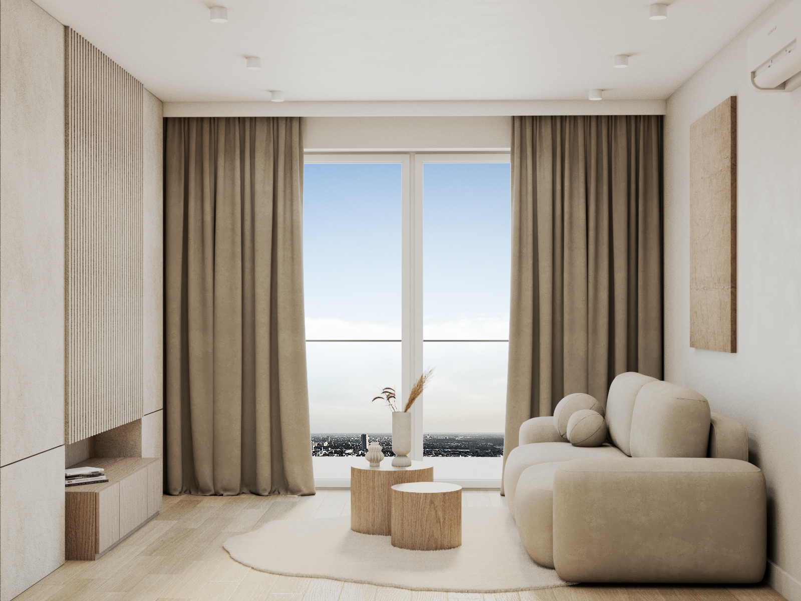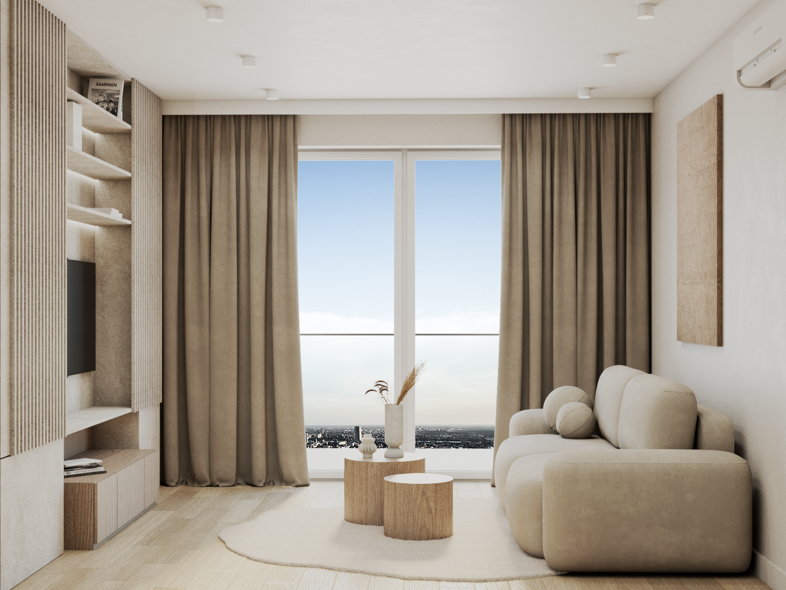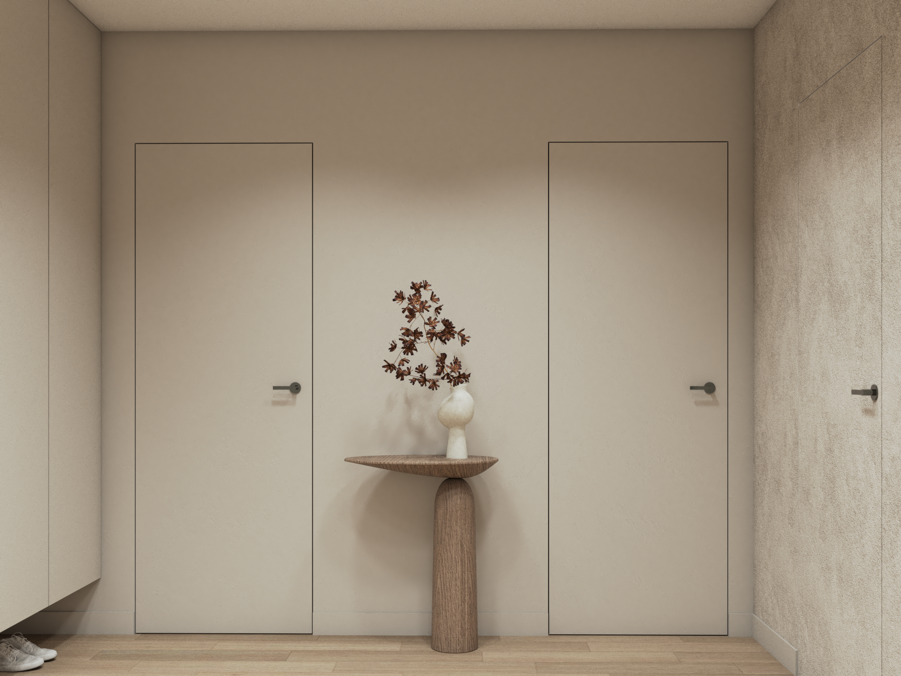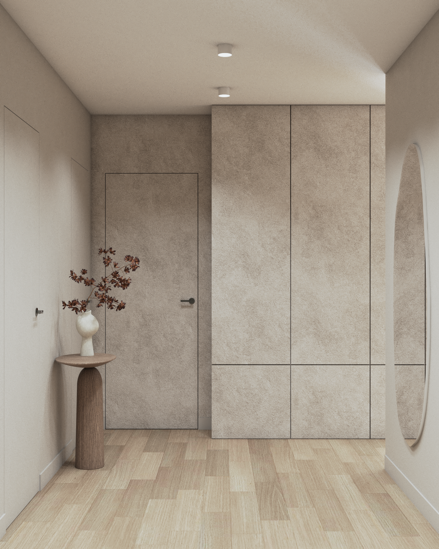 This minimalist apartment project, located in Siedlce, was designed to reflect calmness, harmony, and simplicity. The client’s vision centered around a muted, earthy color palette and natural materials — a space where the home becomes a quiet background for everyday life.