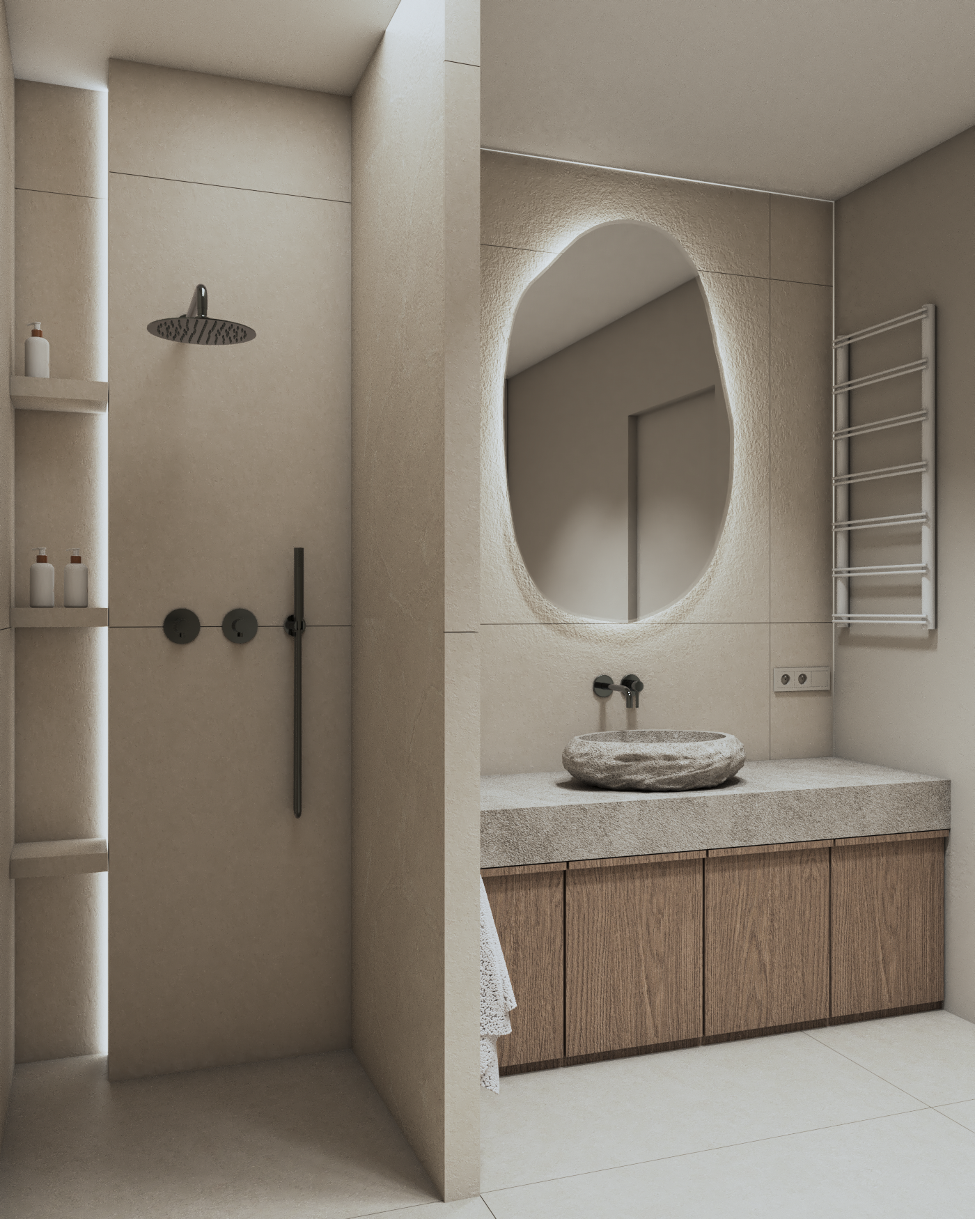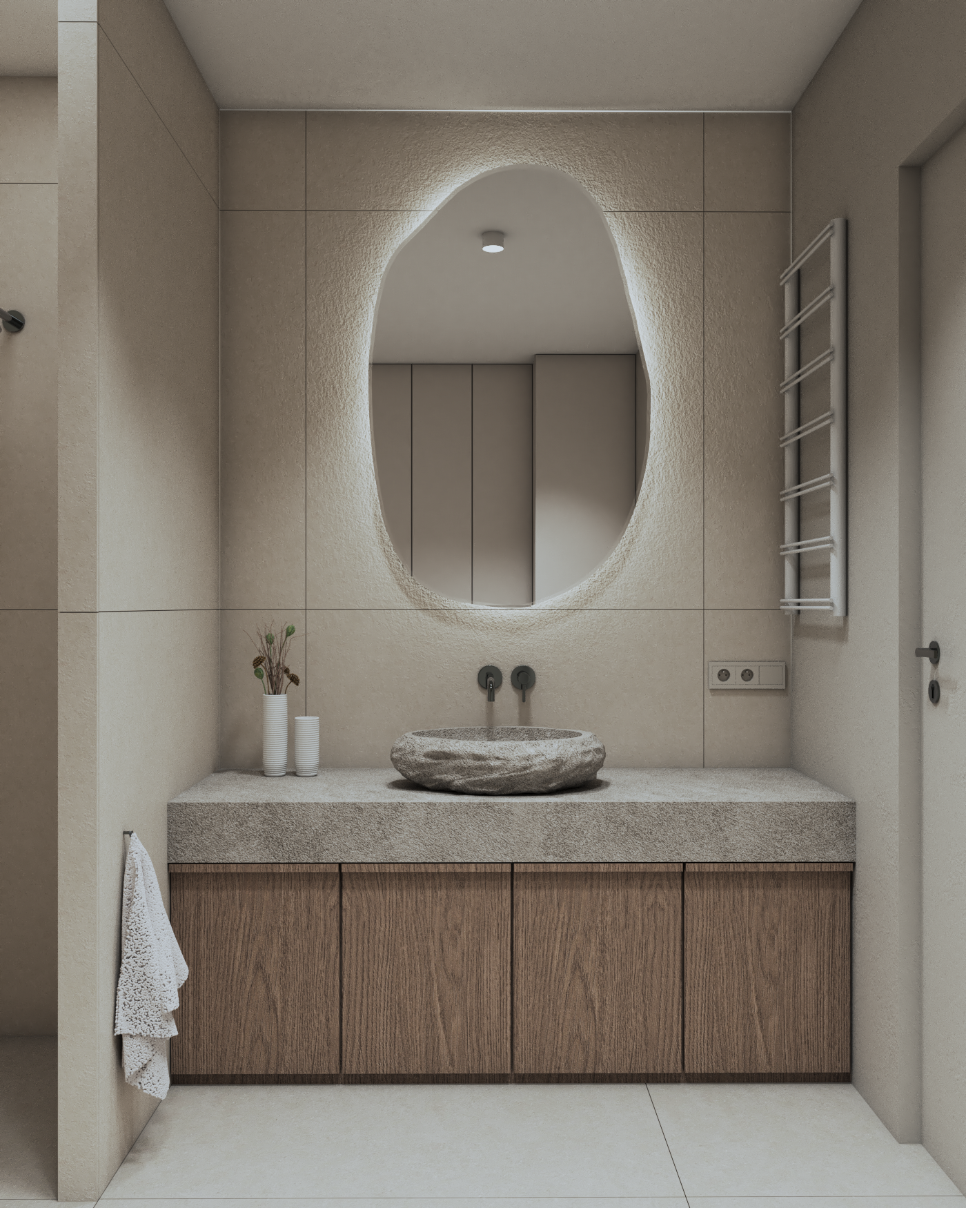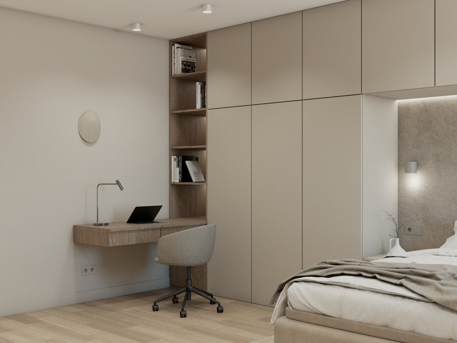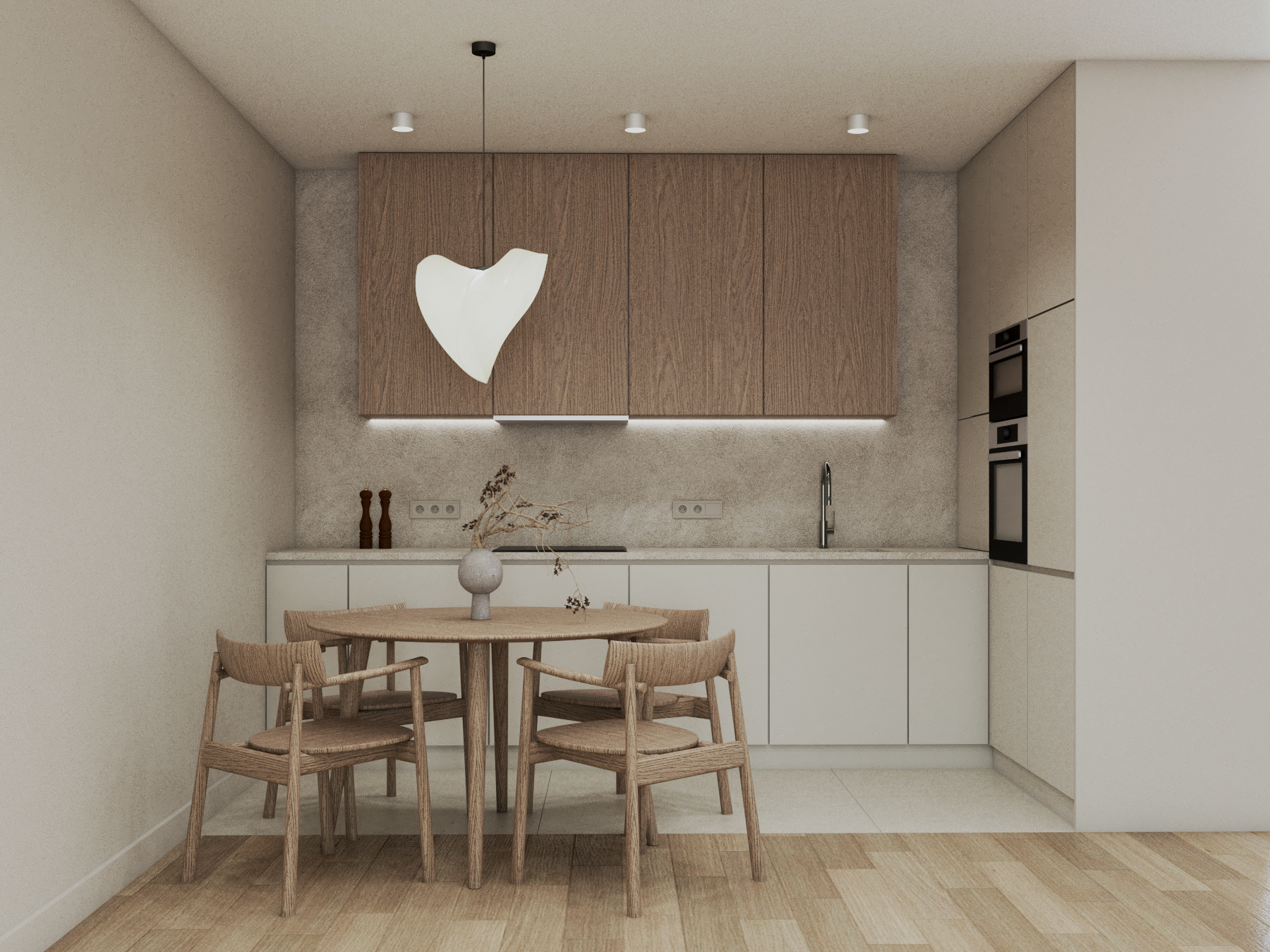 This minimalist apartment project, located in Siedlce, was designed to reflect calmness, harmony, and simplicity. The client’s vision centered around a muted, earthy color palette and natural materials — a space where the home becomes a quiet background for everyday life.